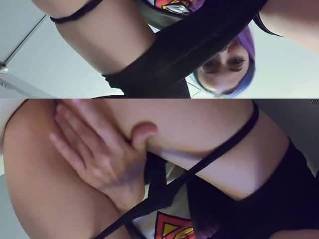 Horny teen in uniform masturbating and showing pussy off