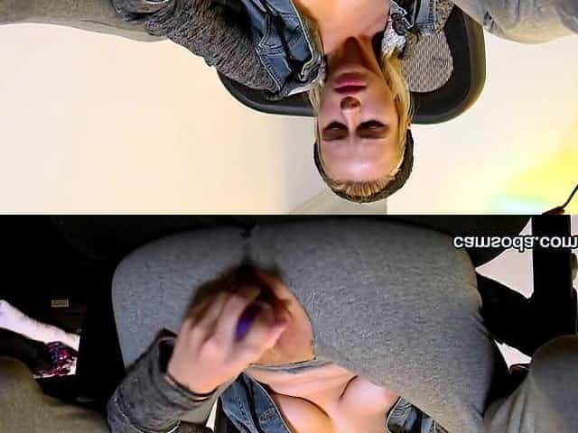 Amateur video of sexy blondie playing with her pink taco on the floor