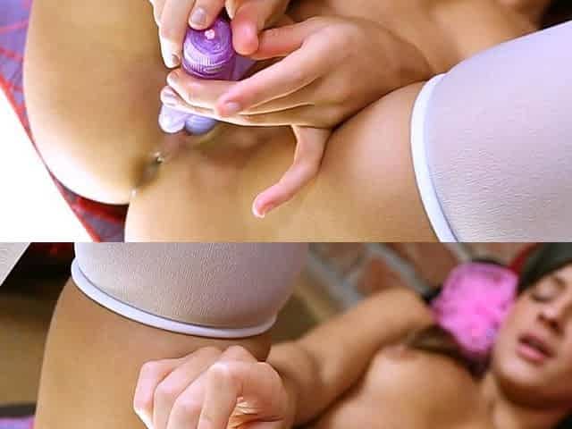 Huge Dildo Anal Ride by 18yo Amateur in Bathroom