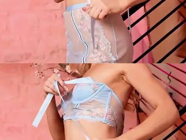 Skinny Girl in Russian Outfit Masturbating