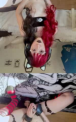 Teen goth brunette bara jerks and sucks cock