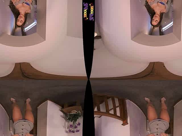 Solo brunette hair Eva lanis plays with her bald twat in VR.