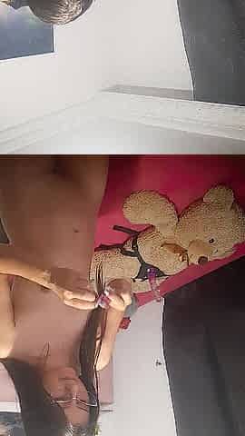 Nasty Latin chick takes her teddy bear and puts her harness on him and puts her jo-bag on him and rides