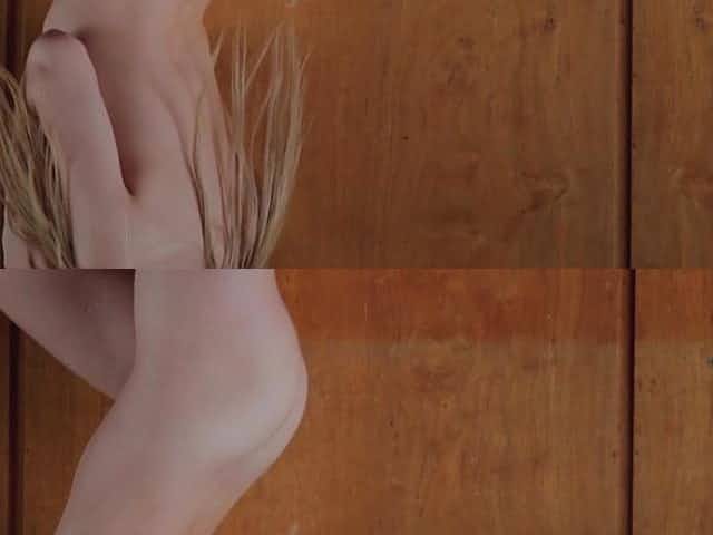 Sexy blonde model Elizabeth Evans spreads her legs to masturbate