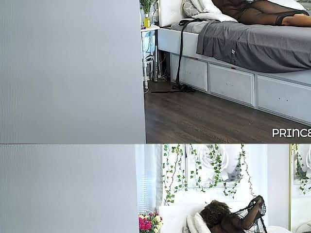 Slender babe Bambi Joli takes off her lingerie to masturbate