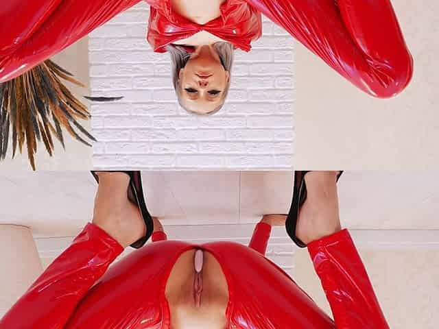 Your Blonde in Latex Squirts and Rides Anal on a Dildo