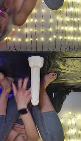 18-year-old Virgin Behind. a Huge Dildo Rubs Her and Makes Her Cum!!!!