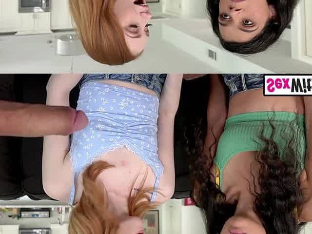 Petite lalin girl teen gals team up to conquer a large white wang jointly