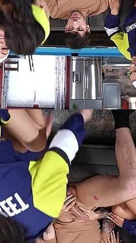 Threesome Japan teen fuck after soccer game with coach