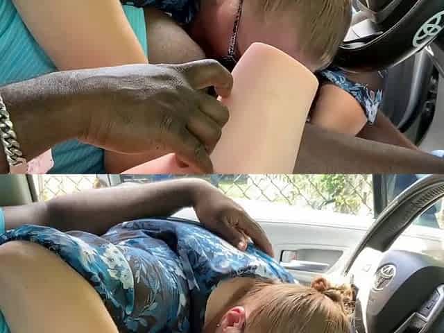 Big ass stepmom watches her stepdaughter get nailed by a black pipe in the car
