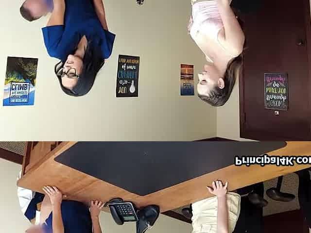 Oral loving coed shares principals dick with a slutty housewife