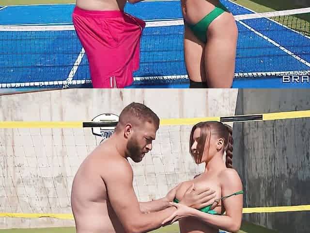 Brandi Love is having steamy sex with her tennis partner after giving him a oral-job