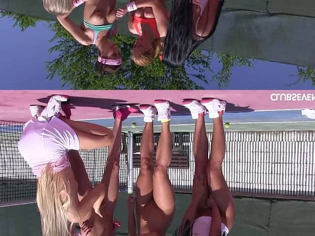 Threesome On A Tennis Court With A Slim Brunette And Blonde American Woman