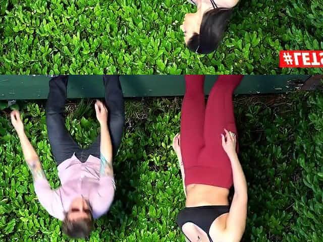 Brunette and blonde tennis teens make threesome ffm outdoor