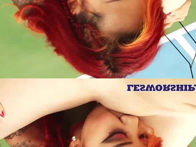 Fat big beautiful woman sixtynining on the tennis court