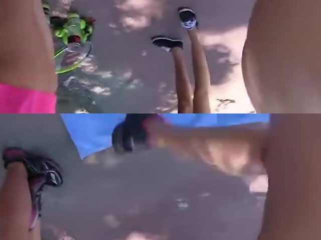 [TD] 2016-12-26 Mila Azul spreads wearing her tennis shoes and socks