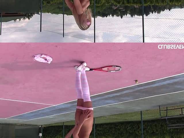 Sporty blonde babe Kara Lee fucked on the tennis court