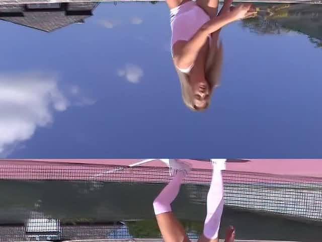 Sporty blonde babe plays with her tight pussy on the tennis court