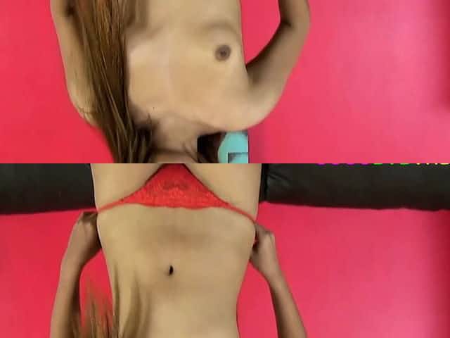 Thong-clad Thai babe with petite tits enjoying a hardcore doggy style fuck