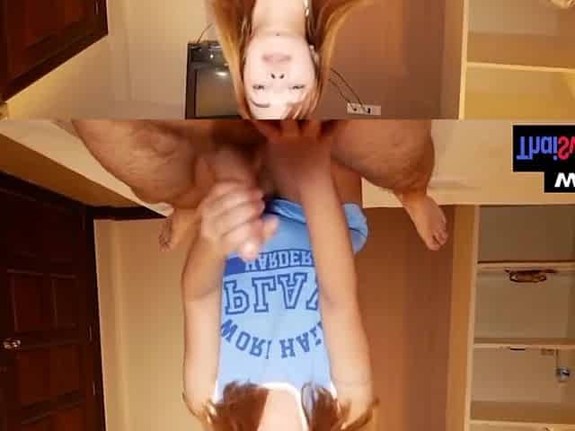 Novinha magrinha gulosa sentando no consolo enorme com a