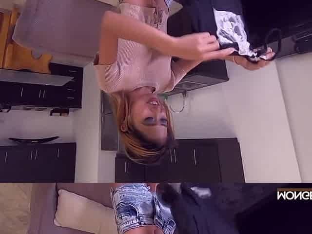 Skinny teen babe gets her tight asshole stretched with a big shaft hiding under her panties