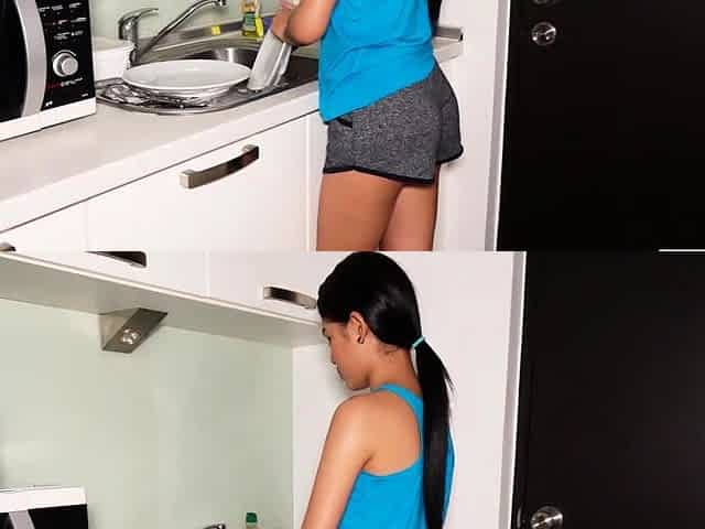 Tiny Thai amateur teen girlfriend Namtam homemade dinner and fucked