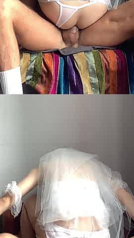 Asian Crossdresser in White Lingerie & Veil Hot Moans