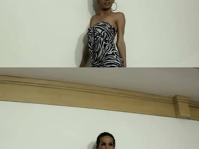 Gorgeous Thai t-girl in dress plays with her shaved cock
