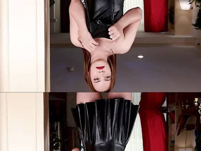 Perfect handjob with gloves on by tranny with big cock before anal sex