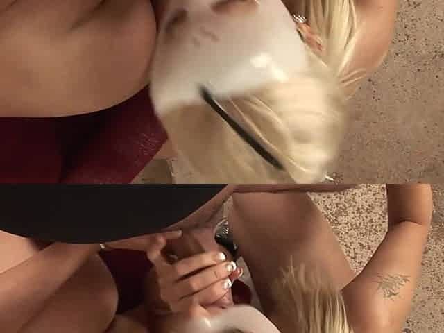Big titted blonde tramp giving blowjob in hardcore 3some