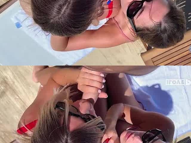 Red Panties Brunette And Blonde Chicks Fucks In Threesome