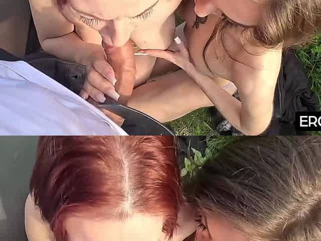 Sexy Blonde Threesome Pussy Fucking In The Park