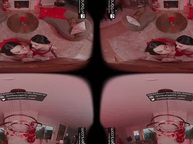 VR Bangers: 2 Concupiscent Brunettes in Underware Suck and Bang Cupid in an FFM Trio on Valentine’s Day - VR Porn