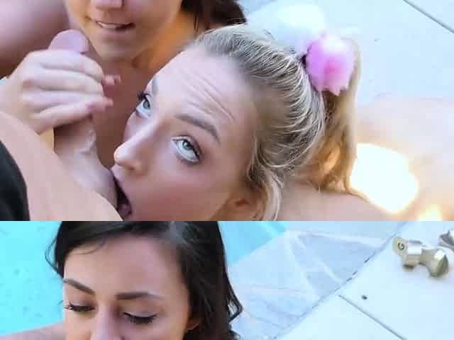 Sucking two BBC by the pool and getting them in in the bedroom