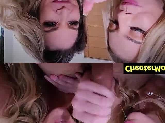 Dont Fight Over The Bone, Ladies - Redhead, blonde sharing big cock in POV threesome hardcore