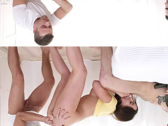 Petite stepsisters fucked by a big cock as they lick pussy