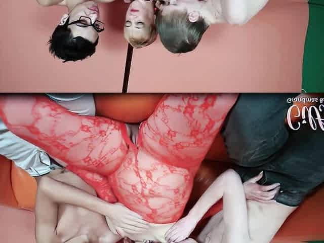 Skinny Dark Hair Girl In Red Lingerie Gets Threesome Anal