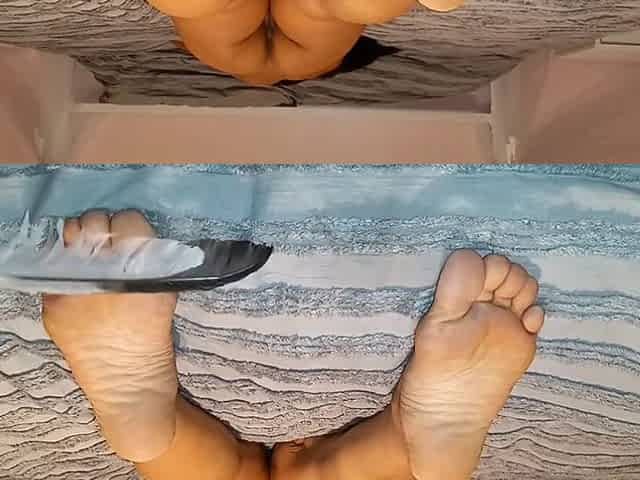 Tickling her pussy with a feather sends her wild, Slim tanned goddess shows off her juicy cherry pussy while tickling her outer