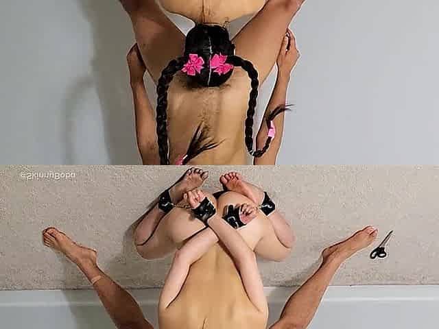 Oriental Serving Her Masters Jock During A Oral job Training Bound Up In Slavery - Hair Cutting S&M