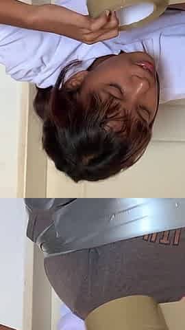 Moni Lee's first mummification and breath play session in a swim cap