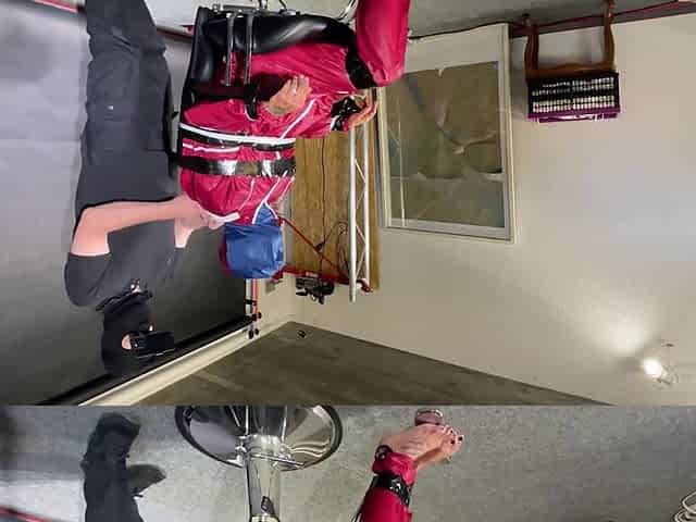 Sexy Ronja Wearing Shiny Nylon Downwear Being Tied And Hooded With Tapes From Stella On A Rack (Video)
