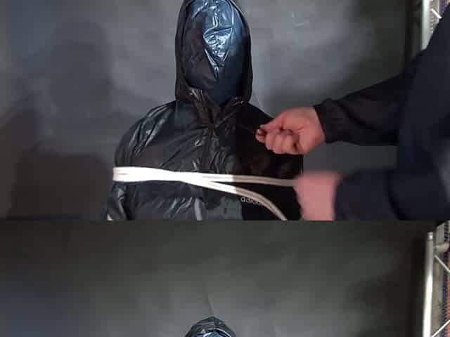 Marie M Tied, Gagged And Suspended In Shiny Nylon Rainwear