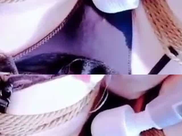 BDSM babe vibrates pussy while bound during masterclass