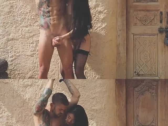 Cute Girl tied up herself and got Fucked in Public