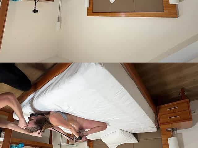 Mistress Punishes and Fucks a Slave Tied by the Legs to the Bed