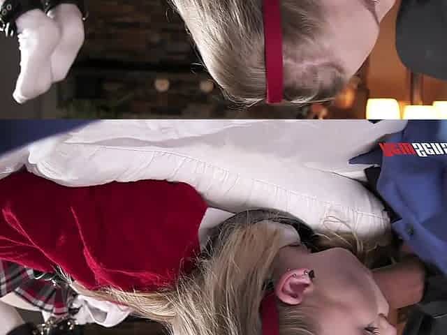 Gorgeous Blonde Sweetie Gets Nailed Hard with a Massive Stra