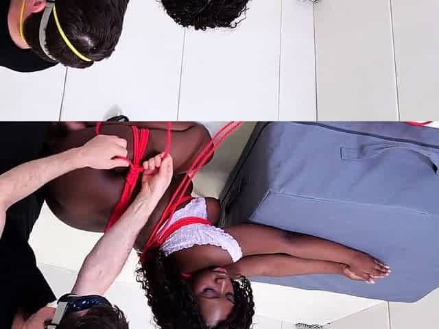 Dominant Isis Love tied up skinny Monica Breeze for BDSM torture