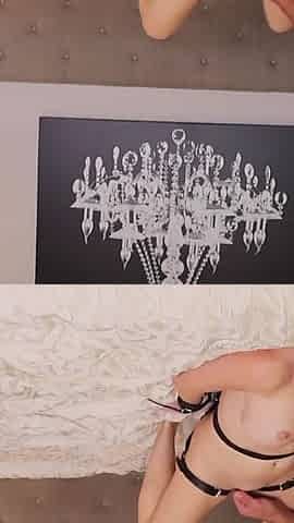 Bound kitten girl Gettinitinguru worships his cock with a string leash and gets covered in cum during pet play