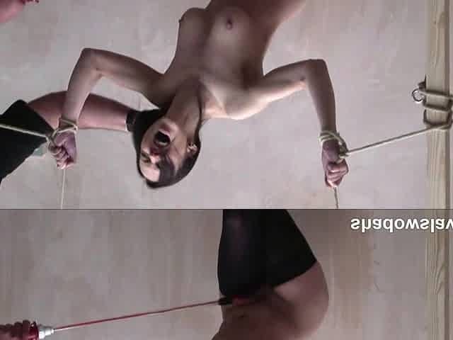 Tied Brunette Whipped And Toyed