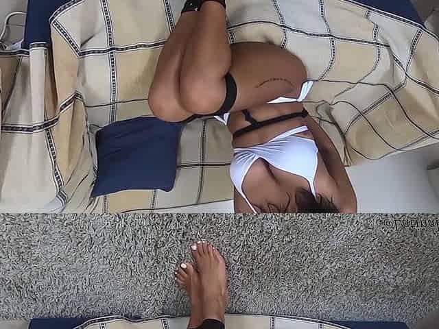 Latina Tied up with Red Rope and Tape Gagged in White Lingerie (smaller Size)